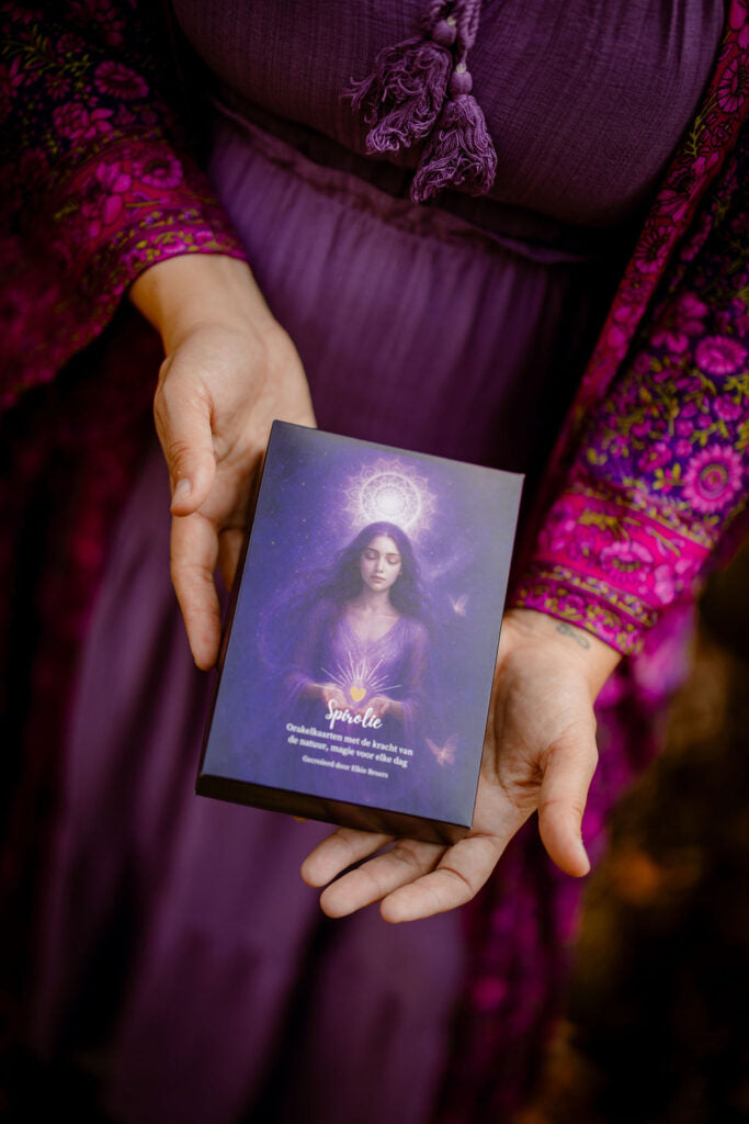J'ai créé ce deck d'abord pour moi-même : A5-je l'imprime sur un génie spécifique – de nouveaux visuels, des feuilles d'olivier et du travail. J'ai créé une pratique quotidienne pour moi-même. Dans mon propre processus, j'ai rencontré le client et je lui ai demandé son avis. Toen dacht ik: qu'est-ce que je vais aussi mourir pour twee verbind tot één krachtig ritueel? Je vais le faire, je le testerai, je le ferai. Tout ce que vous savez sur le terrain : je travaille avec mes clients, j'ai mon intuition et mon huile moi-même. Cela a également commencé pour moi, en grandissant sur ce pont – visuellement énergétique. Mon cas est que j'ai rencontré cette carte même si je l'ai vérifié: zacht, holder, afgestemd. De fysieke work van oliën ken je misschien al; hun energetische laag wordt (vind ik) nog te vaak overgeslagen. Ce deck vous aide à vous préparer – de la manière de jouer, en rythme de jeu.